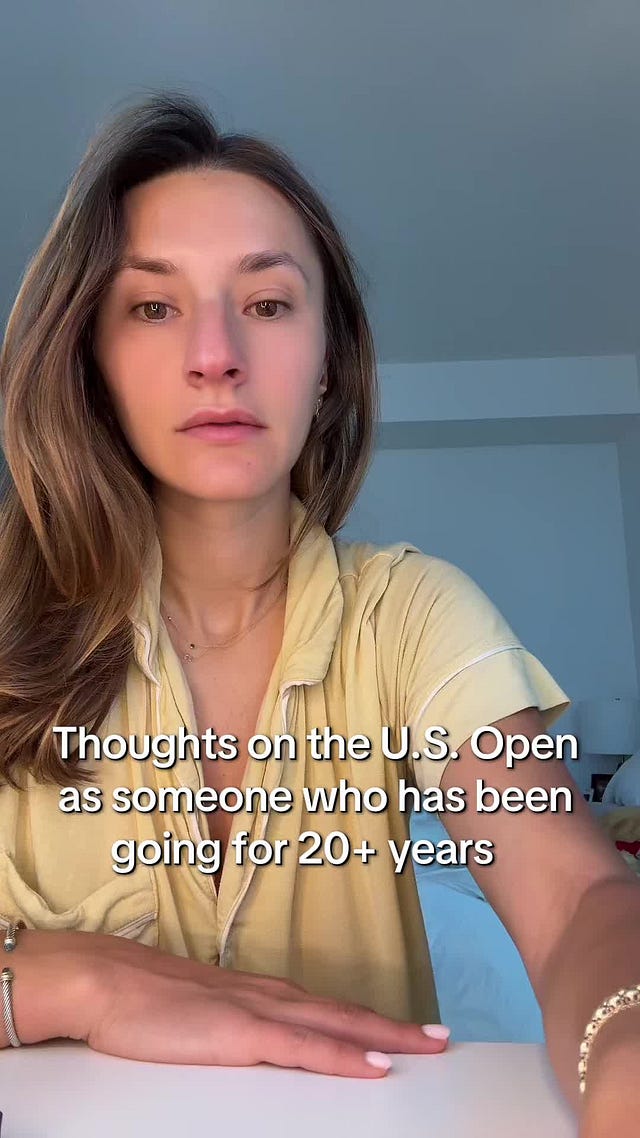 This clip is from a courtside moment at the 2025 US Open. The video isn’t here to critique a person, but to show the kind of shifting focus we’re seeing more often: when the lens turns away from the match and toward the self.